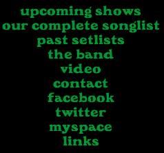 LinksMyspaceTwitterFacebookContactVideoThe BandPast ShowsOur Complete SonglistUpcoming Shows